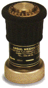 Boquilla para manejo de agua, regulada desde chorro hasta neblina, fabricada en bronce, con válvula de acción manualde tipo paso completo. De apertura y cierre rápido con capuchón de neopreno en la punta para protección a golpes y caídas