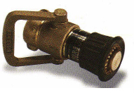 Boquilla para manguera contra incendio fabricada en bronce de tres pasos, regulable cierre-chorro y neblina con capuchón de neopreno para protección a golpes y caídas.