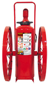 Los extintores industriales sobre ruedas son cargados con polvo químico seco a base de fosfato monoamónico con gran efectividad en fuegos A-B-C; tienen una alta capacidad de extinción de fuego, estos son indispensables en fábricas con procesos de alto riesgo, almacenes de productos inflamables, casetas de pintura, etcétera. Su pistola de disparo de aluminio, permite un mejor control en la regulación de recarga del agente extiguidor.